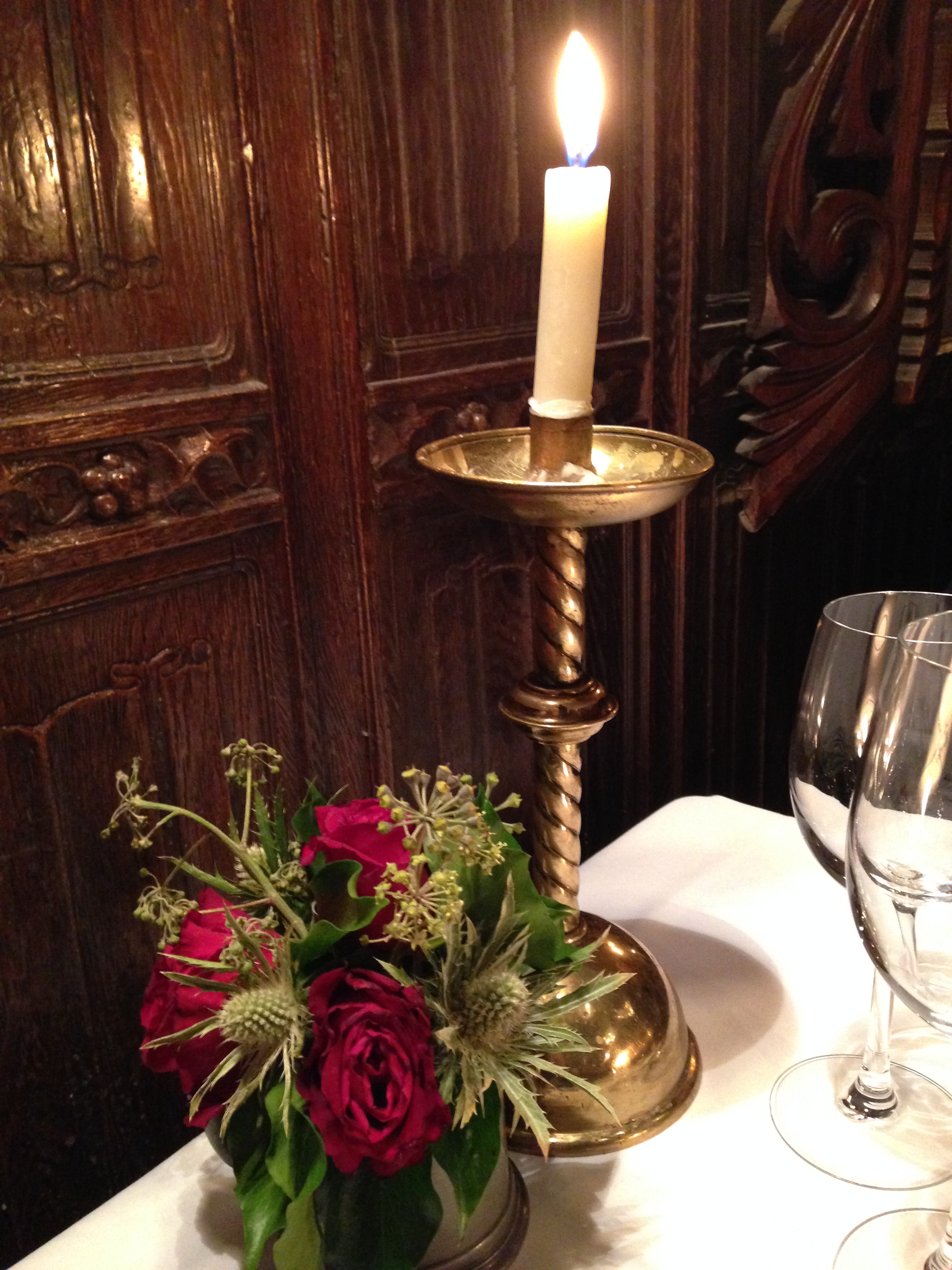 Located very close to Edinburgh Castle at the top of the Royal Mile, the restaurant is housed in the basement of Boswell’s Court which was built in 1595. The establishment also occupies other parts of the building and the one adjacent to it, which together hold a second dining room called ‘The Secret Garden’ and nine bedroom suites. The Royal Mile was remarkably – actually, eerily – quiet as we approached the restaurant, thanks possibly to the draw of Princes Street’s Christmas Market. The Witchery quite literally glowed as we approached it along the cobbles in the dark.